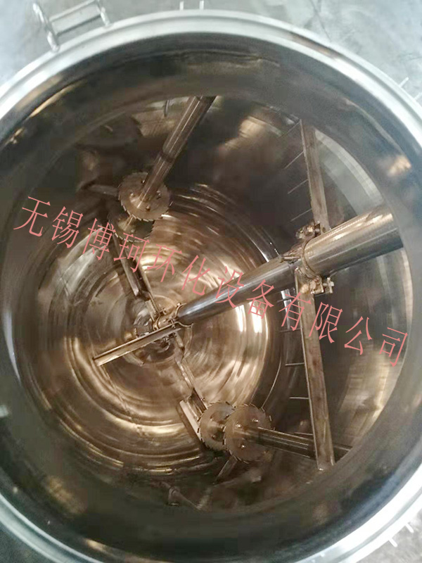 攪拌分散釜由鍋體、鍋蓋、攪拌器、電加熱油夾管、支承及傳動(dòng)裝置、軸封裝置、溢油槽等組成,并配有電加熱棒及測(cè)溫、測(cè)壓表。由于用戶因生產(chǎn)工藝、操作條件不盡相同,攪拌形成一般有錨式、漿式、渦輪式、推進(jìn)式或框式。支承座有懸掛或支承式二種。夾套內(nèi)放置導(dǎo)熱油,由電熱棒加熱,夾套上開有進(jìn)、排油、溢測(cè)量、放空及電熱棒、測(cè)溫等接管孔。夾套外壁焊接支座,鍋體下部開有放料口。